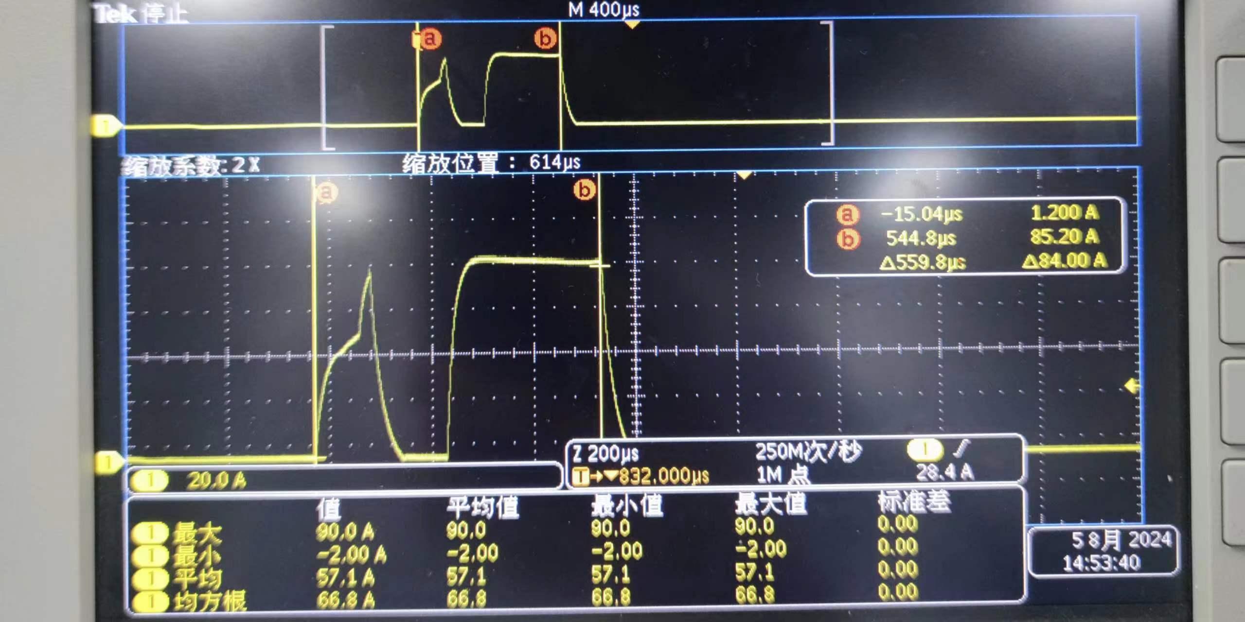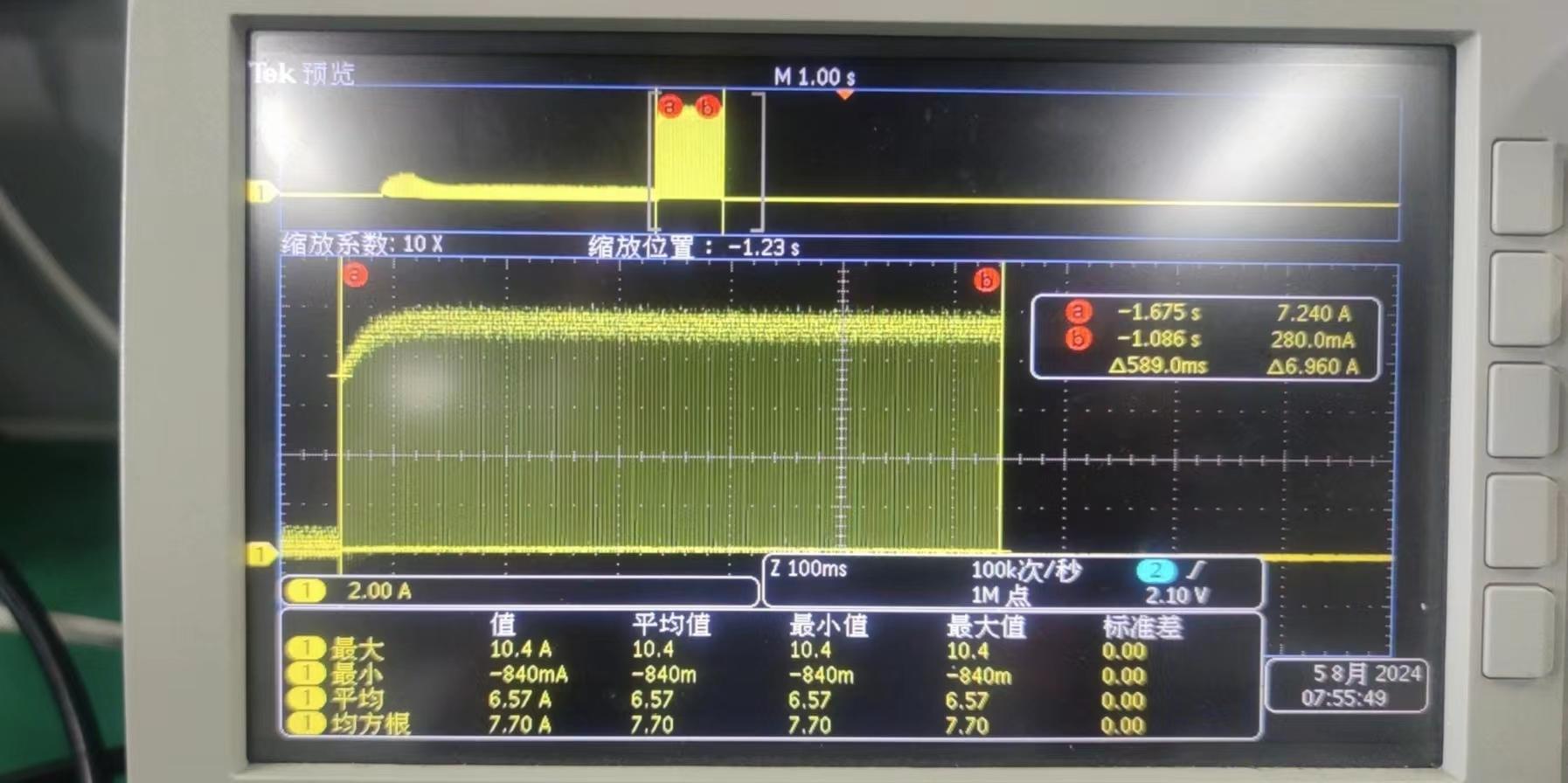 从结果来看,无论是过流还是最后的短路,软件都及时动作,未造成硬件上的损坏,可见保护是有效的。但是从测试角度,需要量化各个电参数的具体数值,这个时候就会存在争议。我最后是看第一个峰开始上升的点到第二个峰开始下降的点,以及这段时间电流的平均值。