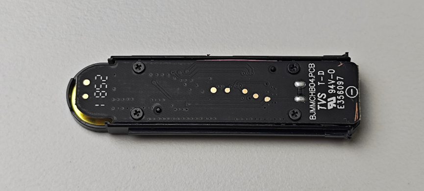 把电池从电池仓里拿出来,可以看到用的是CR1220的锂电池,这个在外壳上也有写。