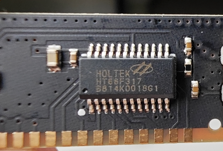 放大看看这个封装为SSOP24的MCU芯片,用的是合泰的HT66F317,是个内置LCD驱动器增强A/D型单片机。