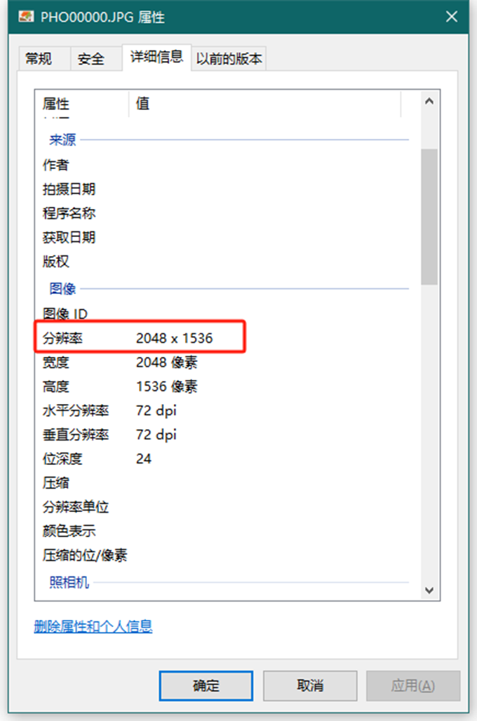 看看照片的属性,分辨率是2048*1536。买的时候看到的像素可是2000W啊?请问2000W像素在哪里?难道2000W又是型号了?