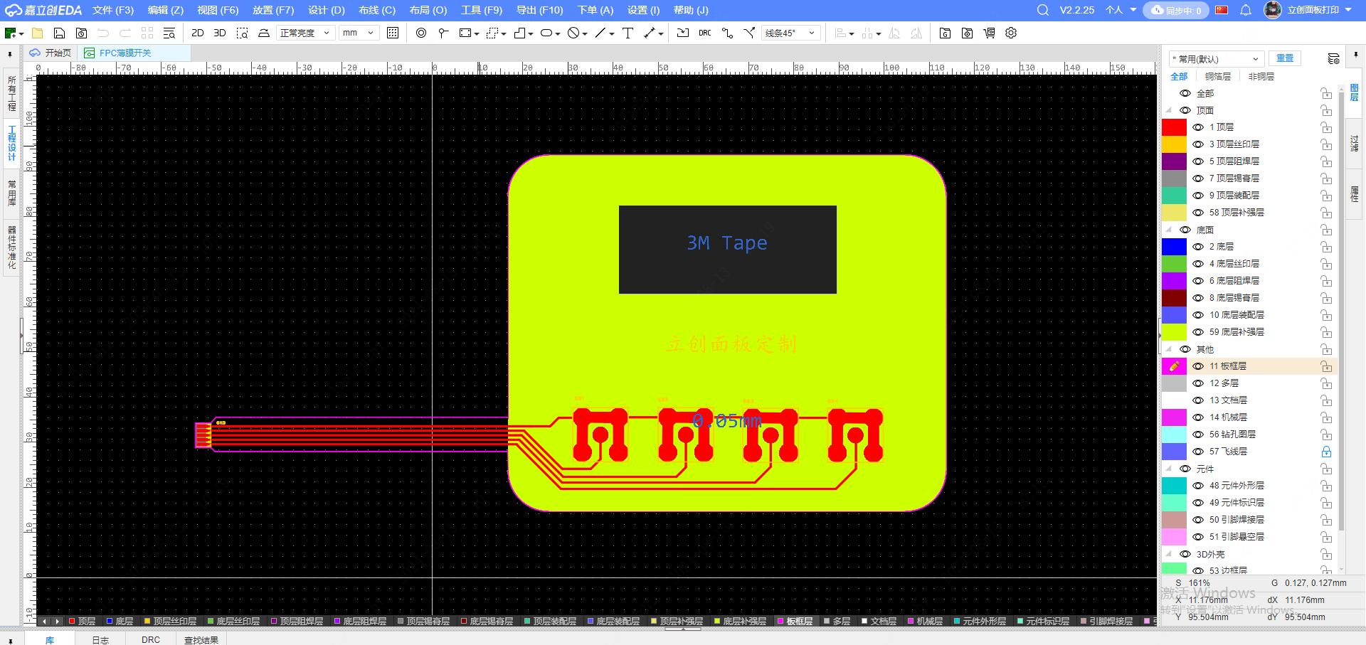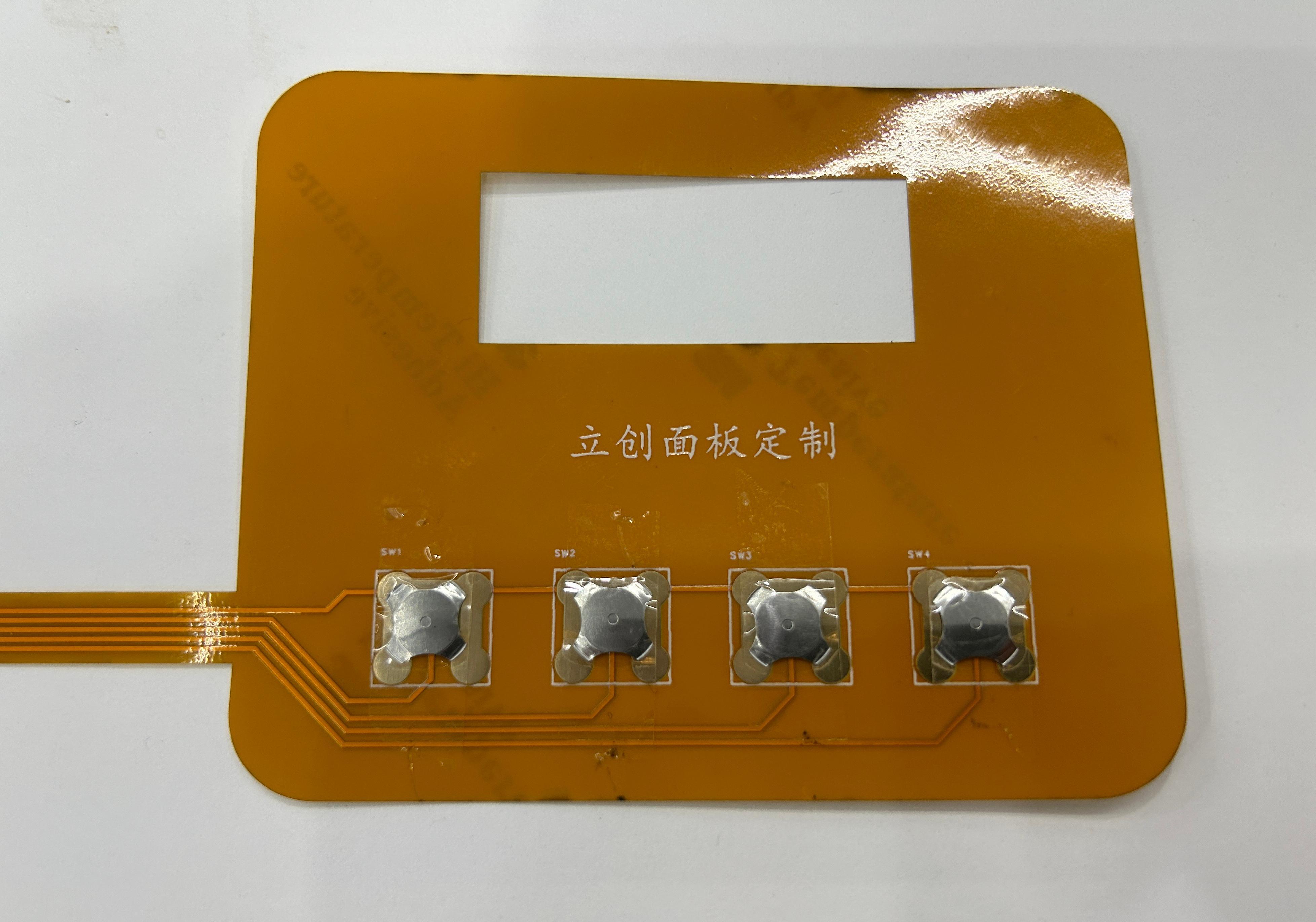 而我此次制作的是FPC薄膜开关,使用金属弹片(锅仔片)和FPC(柔性线路板)作为上下电路实现电路的导通和断开。可以随意弯折,并且更耐高温和腐蚀!