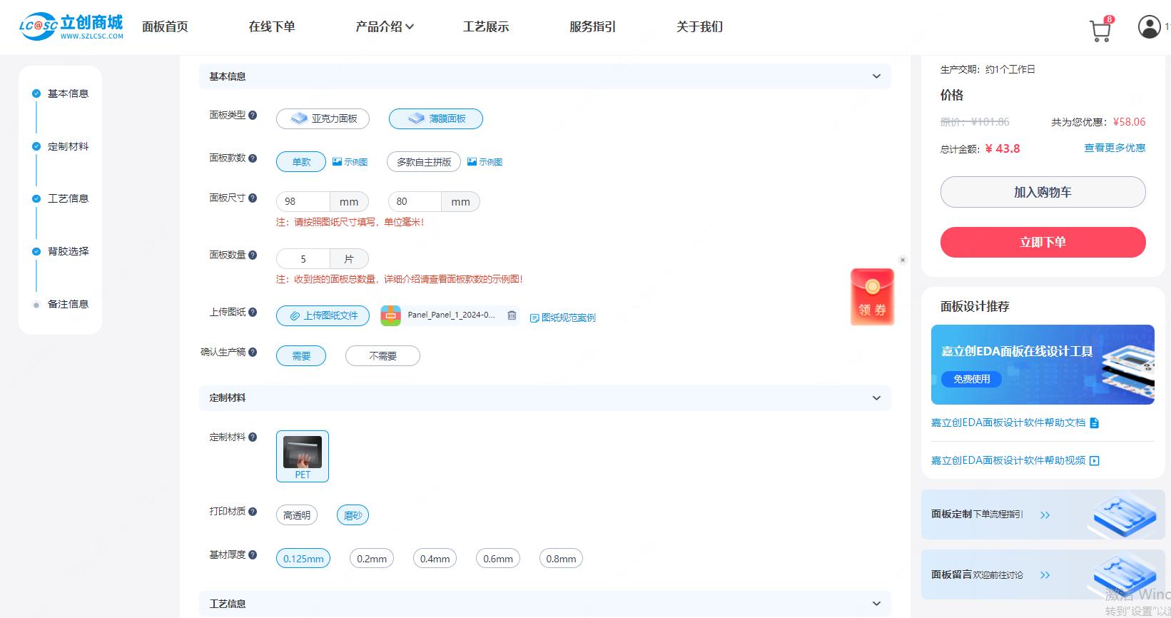 1、即日起扫码进群复刻该项目,每人可领1张满30-20元面板优惠券和1张FPC 100元无门槛券,总共优惠120元!还能享受嘉立创EDA资深专家免费提供技术支持!