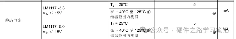 而同样TI的LDO-LM1117,其静态电流是5mA,不同的IC差异很大。