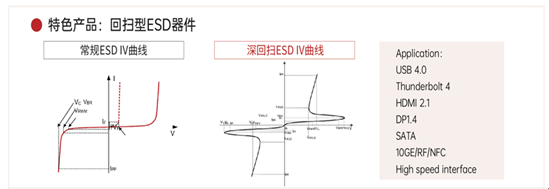 通过对比常规ESD和带回扫ESD的特性曲线图及其优点,可以看出带回扫ESD在ESD保护方面具有更出色的性能和应用前景。