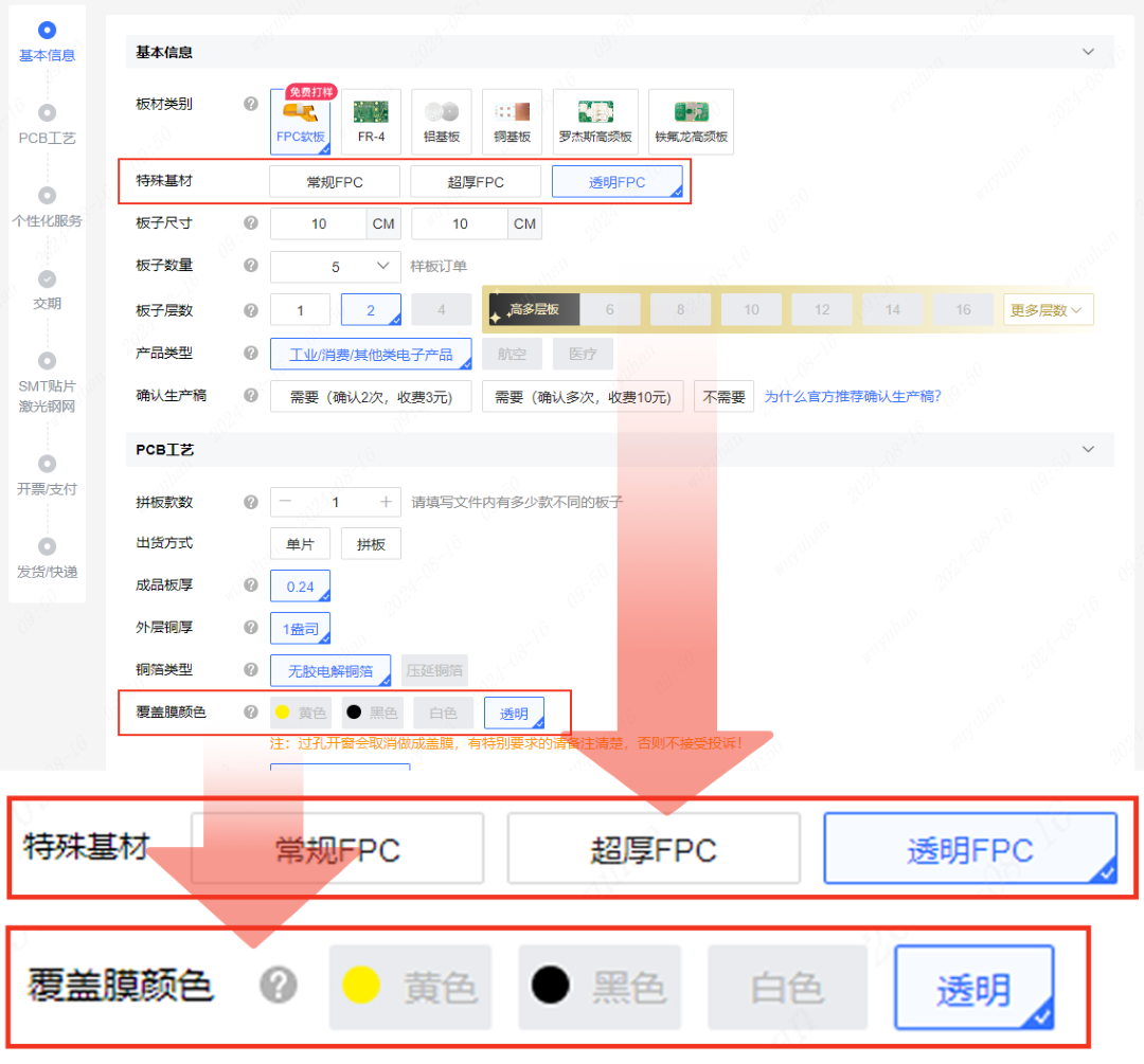 功能更新:嘉立创FPC上线超厚FPC、透明FPC等特殊基材。