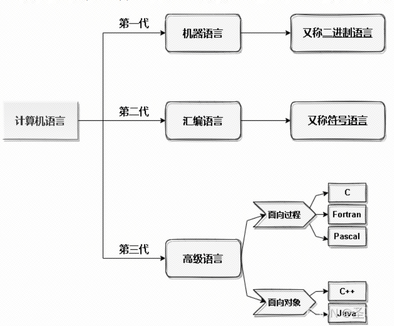 从计算机语言诞生以来,总体可分为三个阶段:1.机器语言2.汇编语言3.高级语言。如下图所示。