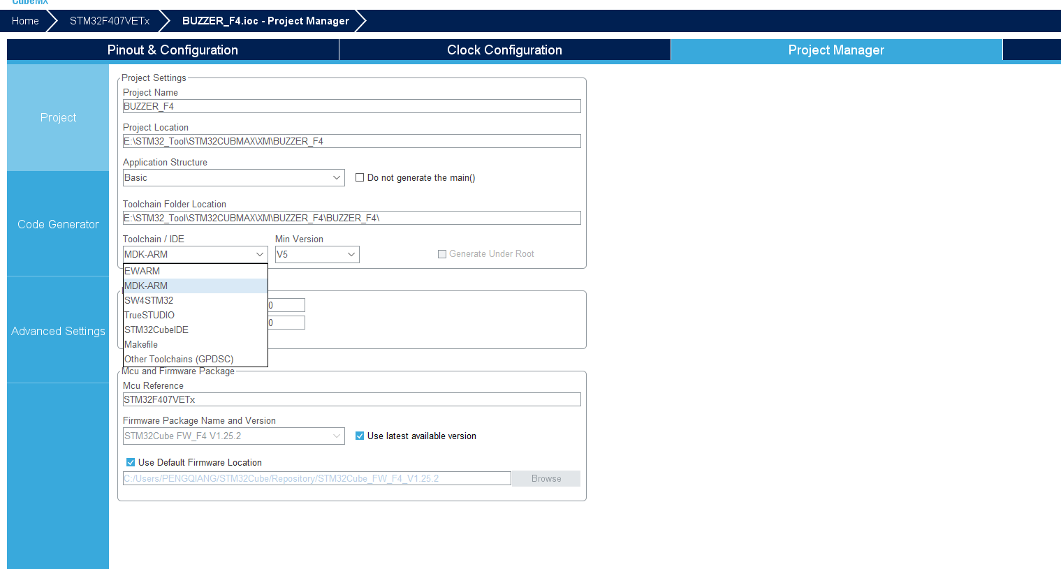 最后编辑工程保存路径,由于使用keil5_MDK编写代码所以选择MDK—ARM