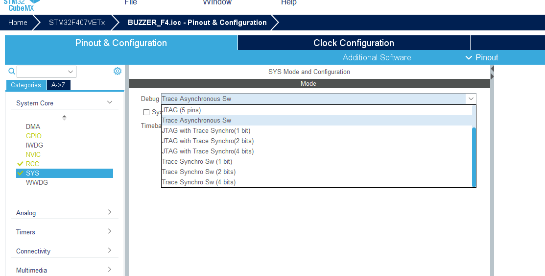 1.使用cubemx配置PB9为推挽输出模式,选择RCC时钟为外部高速时种;由于采用ST_Link下载所以选择Debug为SW模式;再配置时钟树。