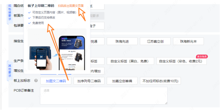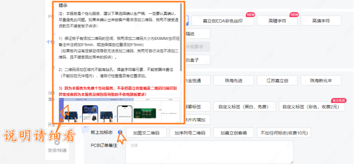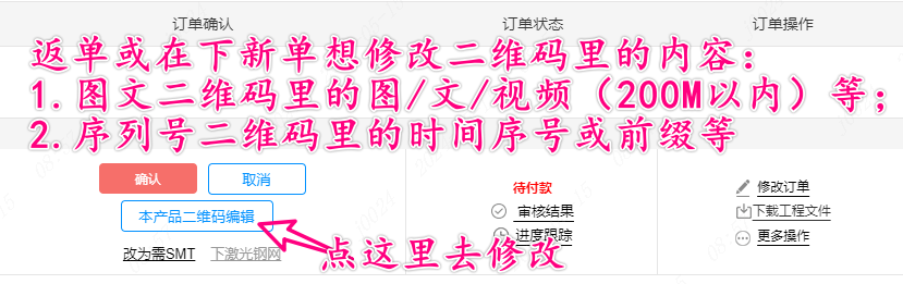 到这里,PCB板上二维码模版就这样选好了;提交订单后,模版里的内容可以编辑修改的;返单时也能修改的哈。
