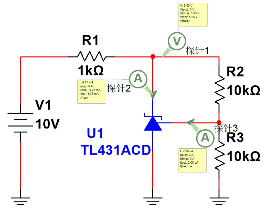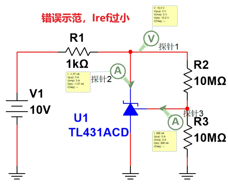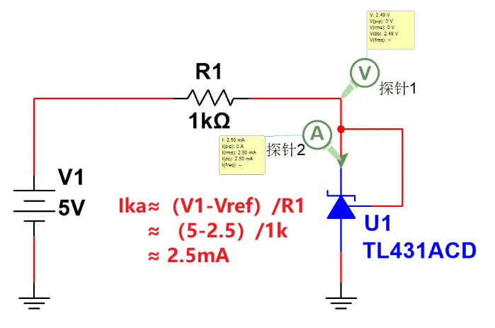 例如下图仿真中,可以看到Ika电流为2.5mA,就符合最小工作电流要求: