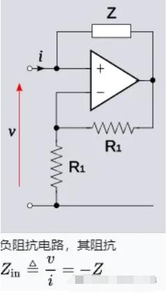 除了上述被动件,以运放为关键器件搭建的有源负阻电路应用更广泛,例如负阻变换器Negative Impedance Converter。一般具有正反馈的运放电路具有负阻特性。如下图的运放复阻抗电路,同相放大Vout=2Vin,由于Z的存在,Iin=(Vin-Vout)/Z=-Vin/Z,Zin=-Z,是不是很神奇!
