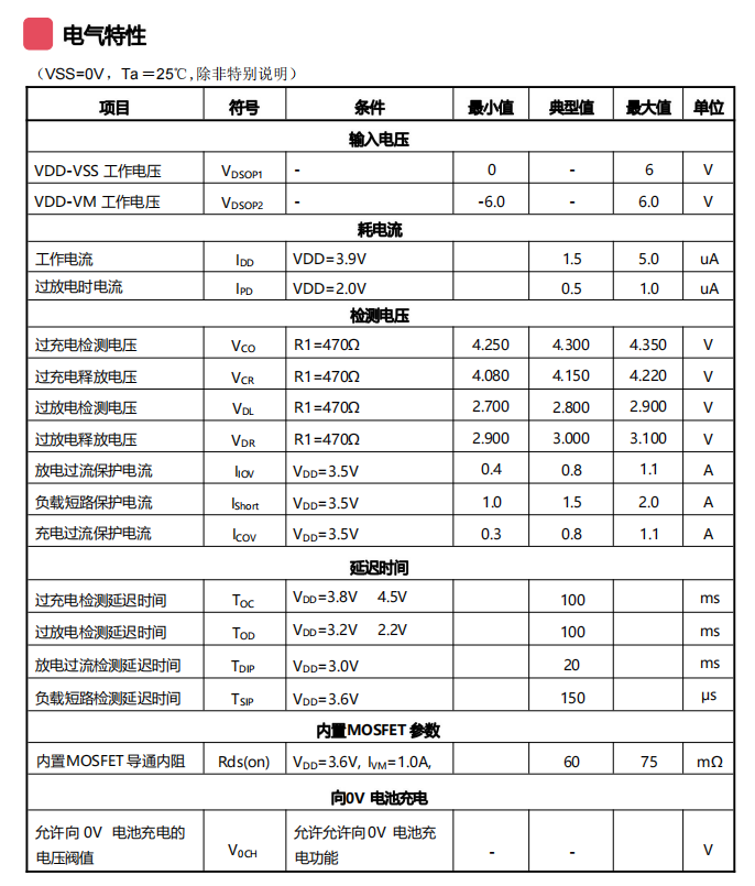 本IC适合于对1节锂离子/锂聚合物可再充电电池的过充电、过放电和过电流进行保护。