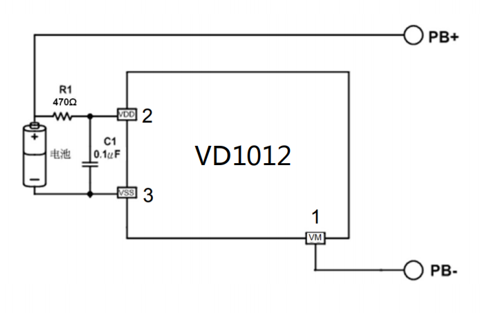 VD1012内置高精度电压检测电路和延迟电路以及内置MOSFET,是用于单节锂离子/锂聚合物可再充电电池的保护IC。