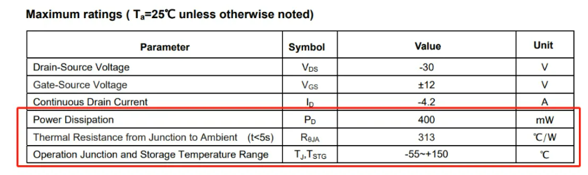那么此时Vgs = -Ie*R2 = -4.27V,再查看CJ3401A的规格书,其导通阈值电压Vgs(th)最大值为 - 1.3V,所以满足MOS管Q1导通条件,输出电压为5V。