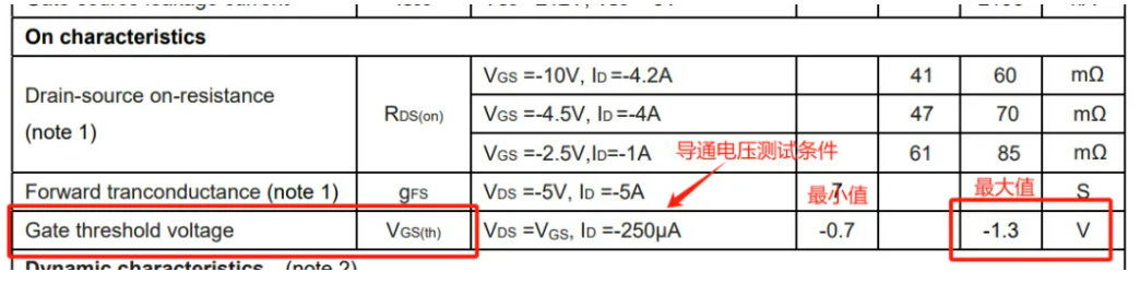再查看CJ3401A的规格书,其 导通阈值电压Vgs(th)最小值为 - 0.7V,最大值为- 1.3V 。 所以如果做成产品,会造成两种情况,导通阈值Vgs(th)区间处于-0.7V~-1V的PMOS会处于导通区或者线性区,而-1V~-1.3V的PMOS可以处于截止区。