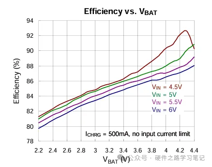 如下图,开关型的充电管理IC充电效率还是比较高的,一直在80%以上。