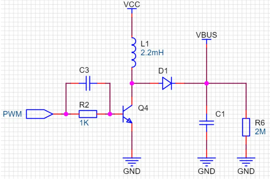 升压部分就是使用的简单的 boost升压拓扑 ,原理图如下,并且可以看到,这次拆解的升压部分和之前拆解的电流按摩仪的升压部分可以说是一模一样: