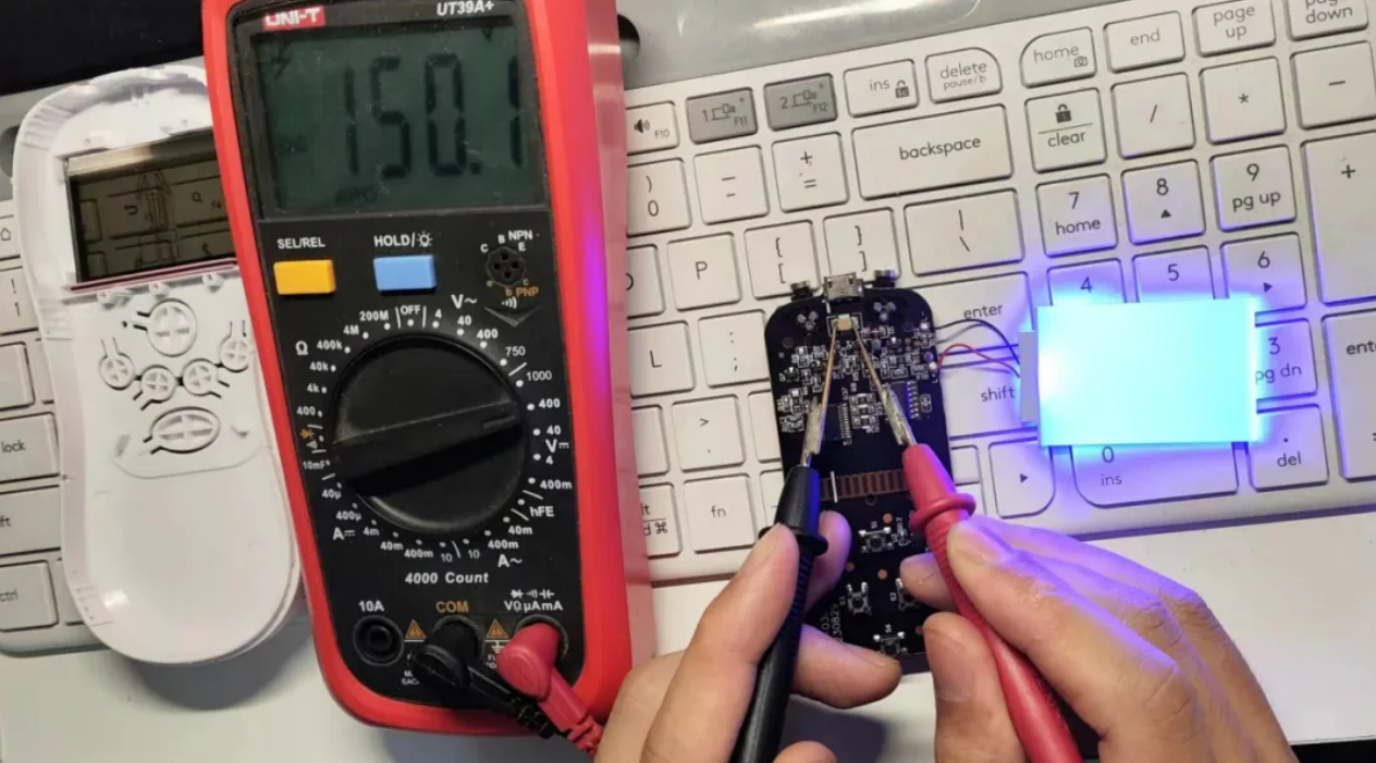 . 实测了一下输出电压,很猛, 最高电压有150V(甚至更高) ,下图是使用万用表的直流档测试出的图片: