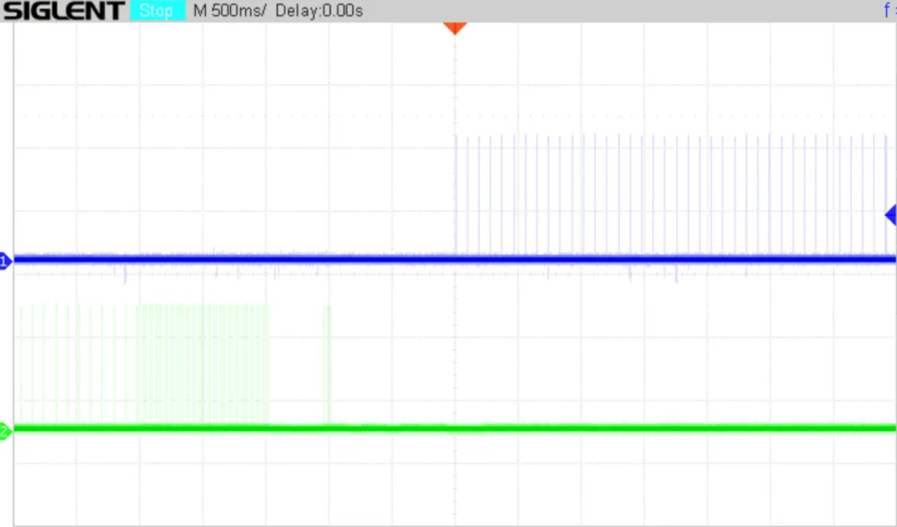 下图是IO10和IO11的测试波形图,不同的模式也是通过调整IO10和IO11的控制间隔,电流流向等方法实现的: