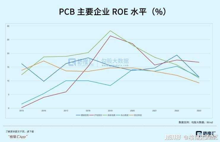 PCB行业在制造工艺上没有类似晶圆代工那么强的规模效应和技术壁垒,而且能直接影响下游的应用发展。事实上,回顾几家做得好的企业,其ROE水平在过去几年里波动很明显,但刨除固有的周期性影响,中枢水平大概也就13%-15%的水平。