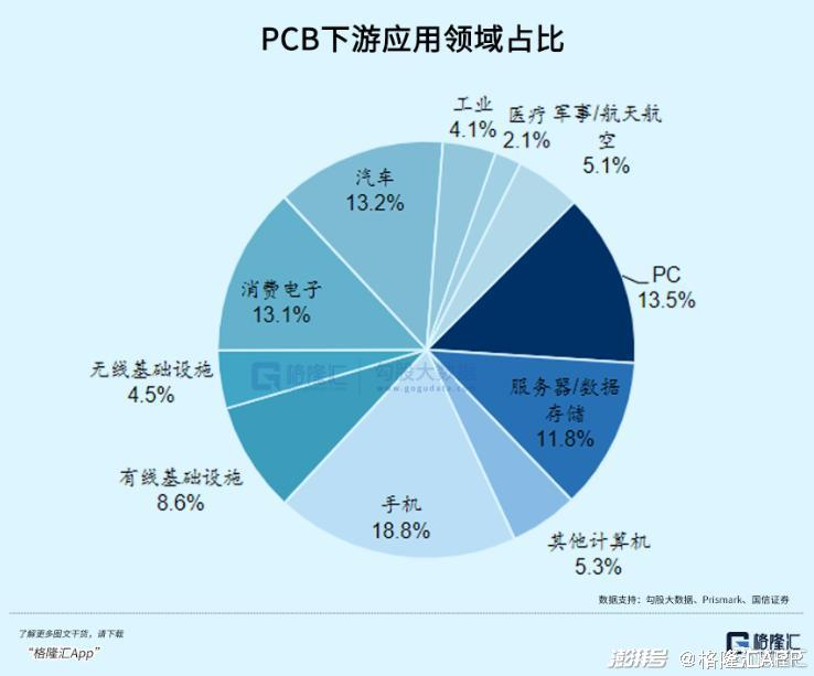 应用十分广泛,所以PCB的规模虽然很庞大,但是产品多种多样,要服务好下游行业的多样需求,决定了PCB这个行业不会太过于集中。业内营收最大的鹏鼎控股,占全球产值的比重不过6%-7%。
