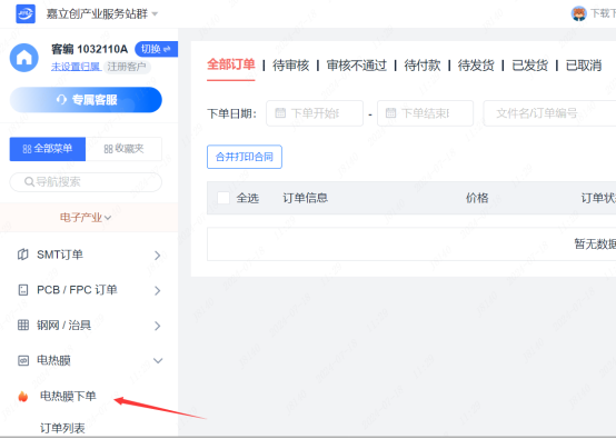 打开嘉立创下单助手,左侧目录点击电热膜下单: