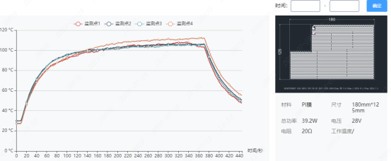我们还提供了测试加热片温度曲线的服务,为各位工程师在做加热测试和产品规划时,提供温升和产品安全设计参考。