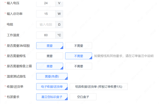 1. 自主输入需求:客户可以直接在嘉立创电热膜网站上输入自己的需求,选择材料、数量等信息。
