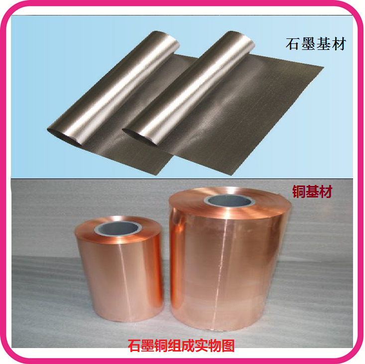 典型的热学管理系统是由外部冷却装置,散热器和热力截面组成。而散热片的重要功能是创造出最大的有效表面积,在这个表面上热力被转移并有外界冷却媒介带走。石墨铜散热片就是利用铜基材具有均温高效热传导特性把热量均衡的传导到石墨基材再通过石墨超高热传导特征将热量均匀的分布在二维平面及时有效的将热量再次转移,达到双重热传导与散热特效,从而降低元器件温度,提高稳定性和使用寿命,保证发热元器件在所承受的温度下高效工作。