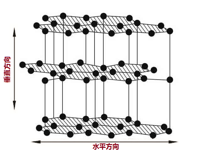 高导热石墨基材也称石墨散热片,是一种全新的高导热散热材料,其具有独特的晶粒取向,沿两个(水平和垂直)方向均匀导热,水平方向热导率有500-1750 W/m-K 范围内的超高导热性能,片层状结构可很好地适应任何表面,屏蔽热源与组件的同时改进消费类电子产品的性能。其分子结构示意图如下: