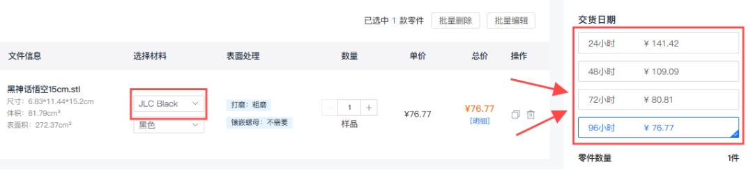 值得一提的是,黑色树脂JLC Black最快24小时即可发货,它的灵活交期也是客户在下单时考虑的因素之一。为了更好地满足客户的需求,我们提供了多个交货时间段的选择,这不仅使客户能更加有效地安排他们的生产计划,还节省了时间,提高了发货速度。