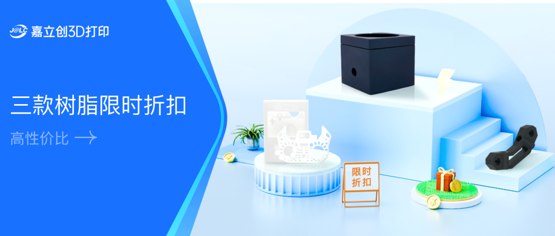 嘉立创3D打印官网目前正在进行限时降价活动,黑色树脂JLC Black也在优惠行列,截止10月31号前,客户在线下单最高可享16.4%的折扣。