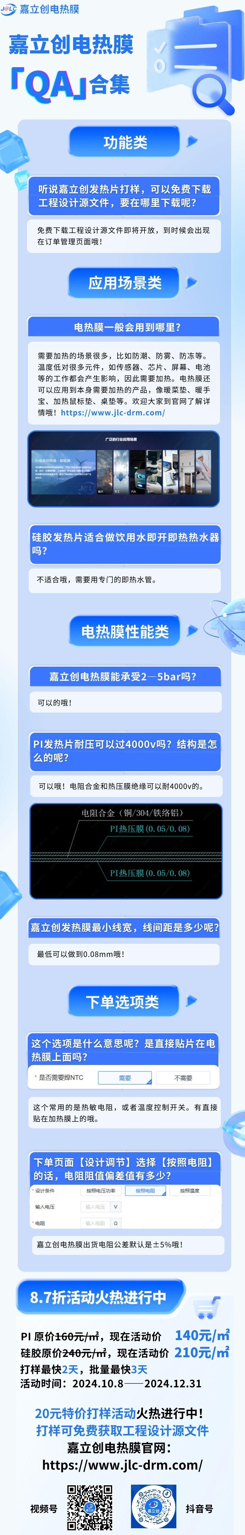 嘉立创电热膜QA合集来啦!快看看大家最近都有哪些疑惑吧!