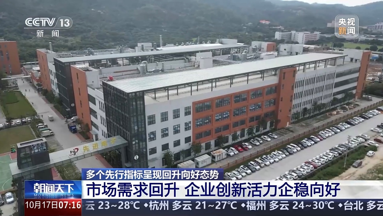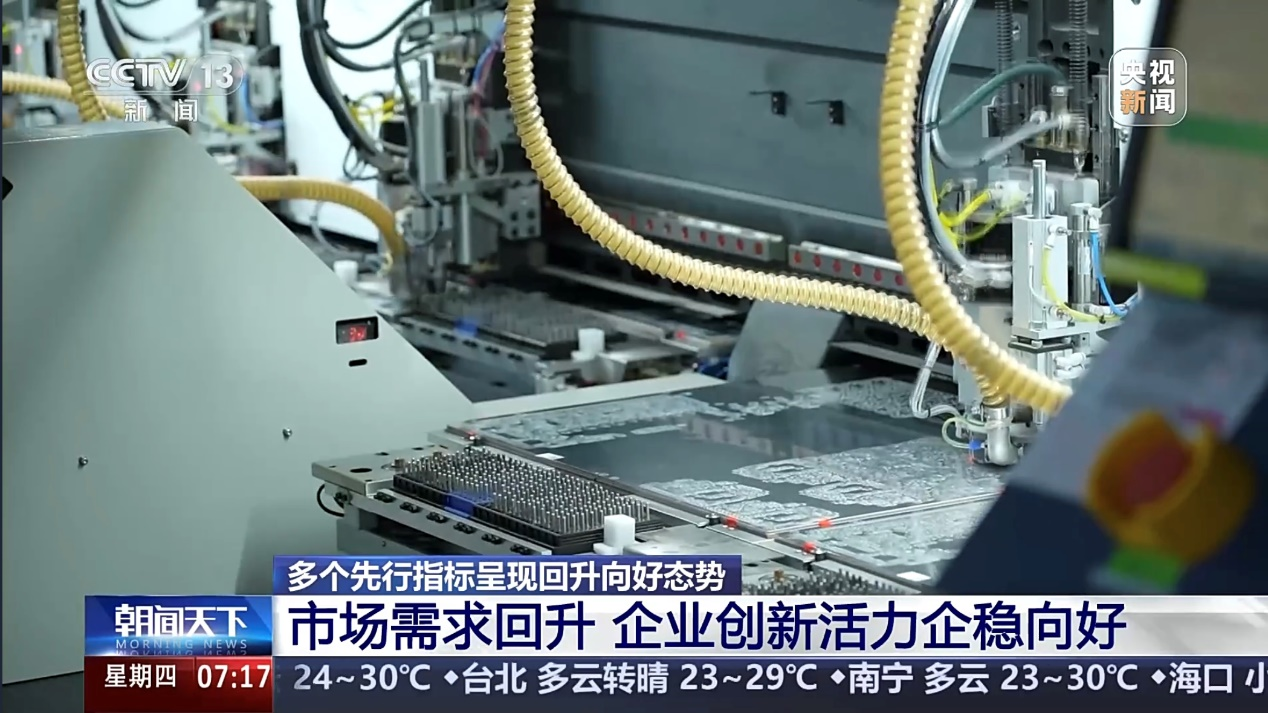 10月17日,央视新闻频道《朝闻天下》、央视中文国际频道《中国新闻》、央视新闻客户端先后以“企业创新活力企稳向好”为题发布重点报道,其中,嘉立创作为高技术制造企业代表备受关注,成为了唯一出镜受访的企业,彰显了其面向硬件创新发展新质生产力所取得的显著成果和责任担当。
