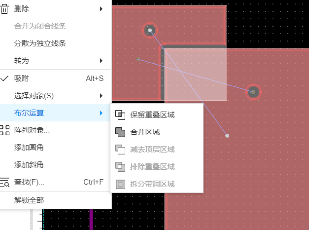 如图, 选中覆铜区域后, "减去顶层区域""排除重叠区域""拆分带洞区域" 都是灰的.