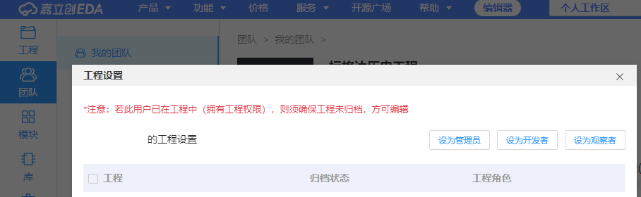 个人工作区里的团队设置无法显示位于文件夹内的工程