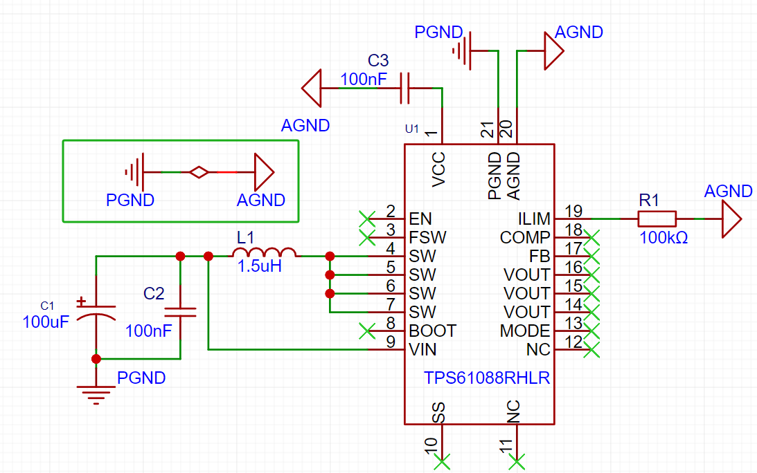 1、原电路图(仅示意本问题,电路并不完整),其中PGND, AGND 独立,未连接