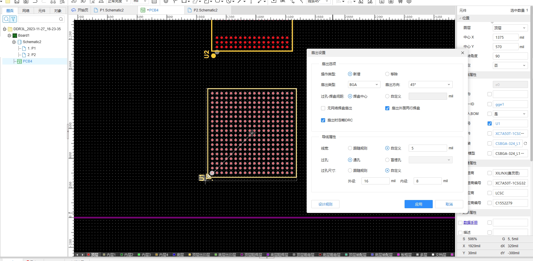 立创EDA专业版有扇出功能这个选项,抱着试试态度点进去,发现没有反应也没有错误提示,然我尝试修改了过孔尺寸,安全间距这些参数,还是没有反应,不知道这个功能是还没有做好吗?