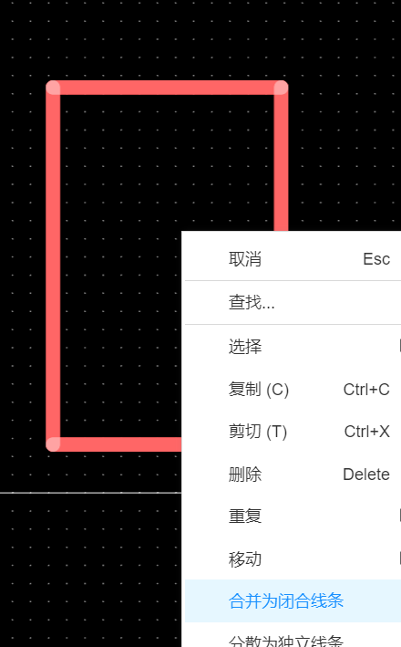 框选4条线段合并为闭合线条,会随机合并其中3段,再框选、闭合,才会生成一整个闭合线条。