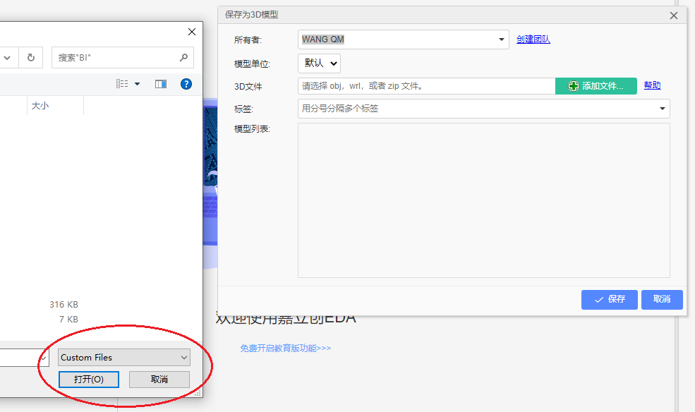EDA标准版6.5.34 和 6.5.39上传不了3D文件