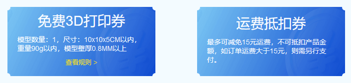 【免费领券】3D打印免费券、满减券、包邮券免费送!(长期活动)