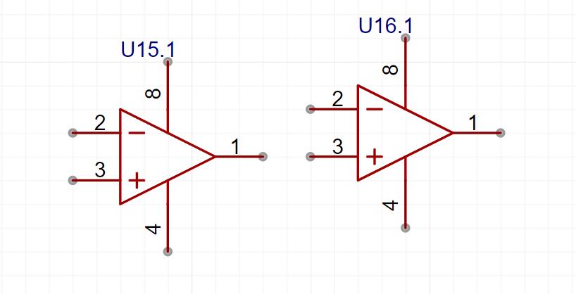 使用的是一个器件内含多组的运放,原理图上如何绘制多组在一个芯片上