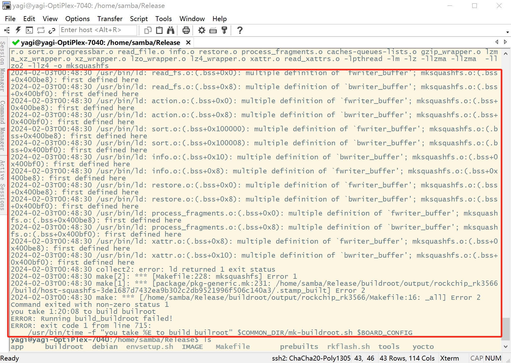 解决方法:把mksquashfs.h头文件中声明的宏,前面加上extern修饰符。然后把那个文件夹下面所有的.o文件都删除,再重新编译
