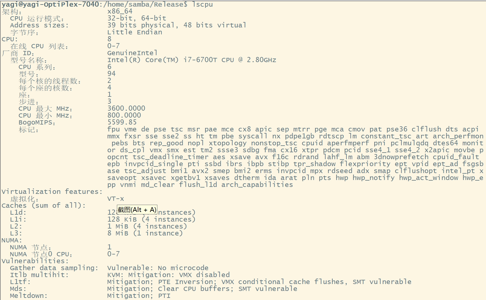 (1)CPU:INTEL I7 6700/4核8线程/2.8GHz