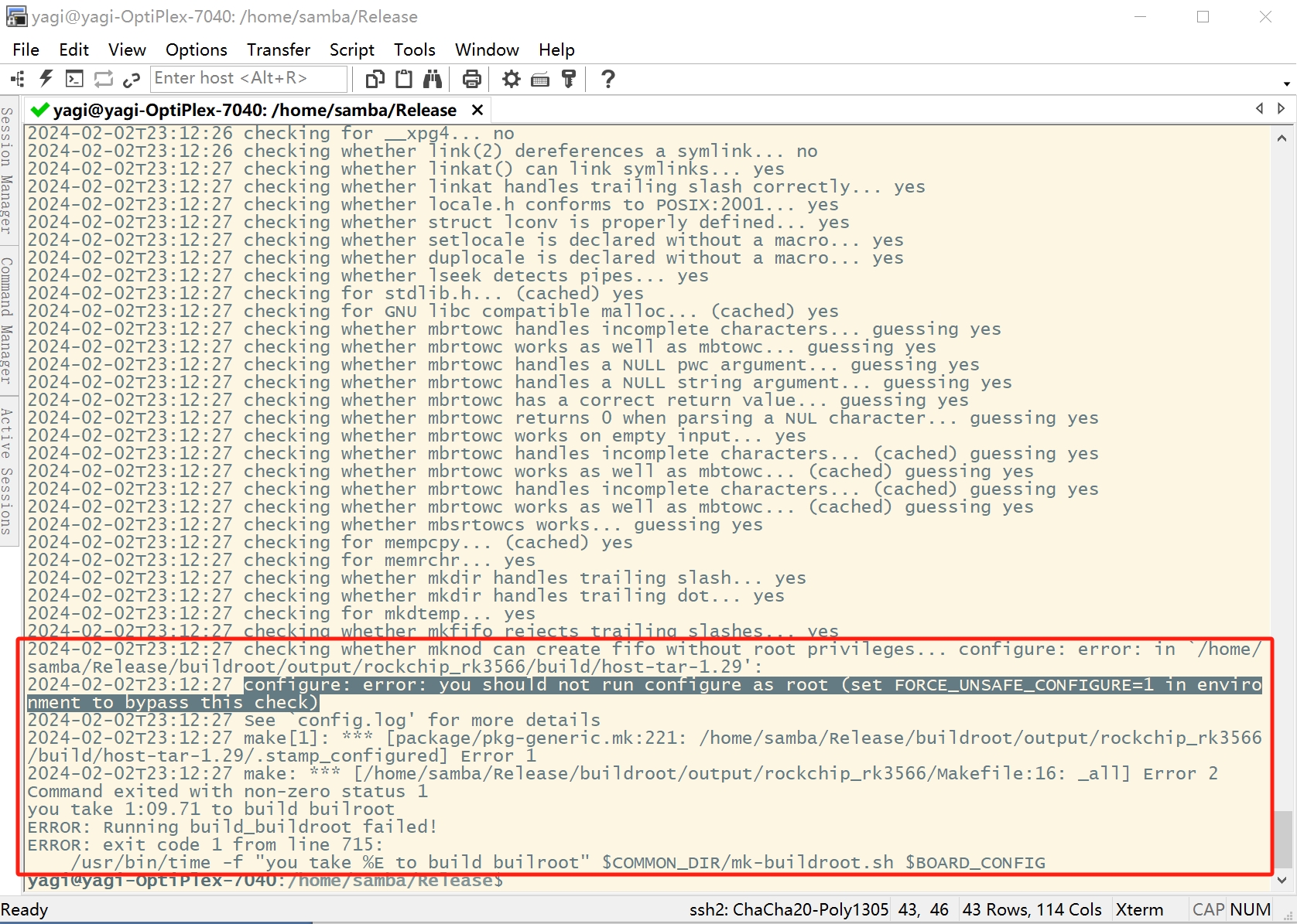 命令:FORCE_UNSAFE_CONFIGURE=1