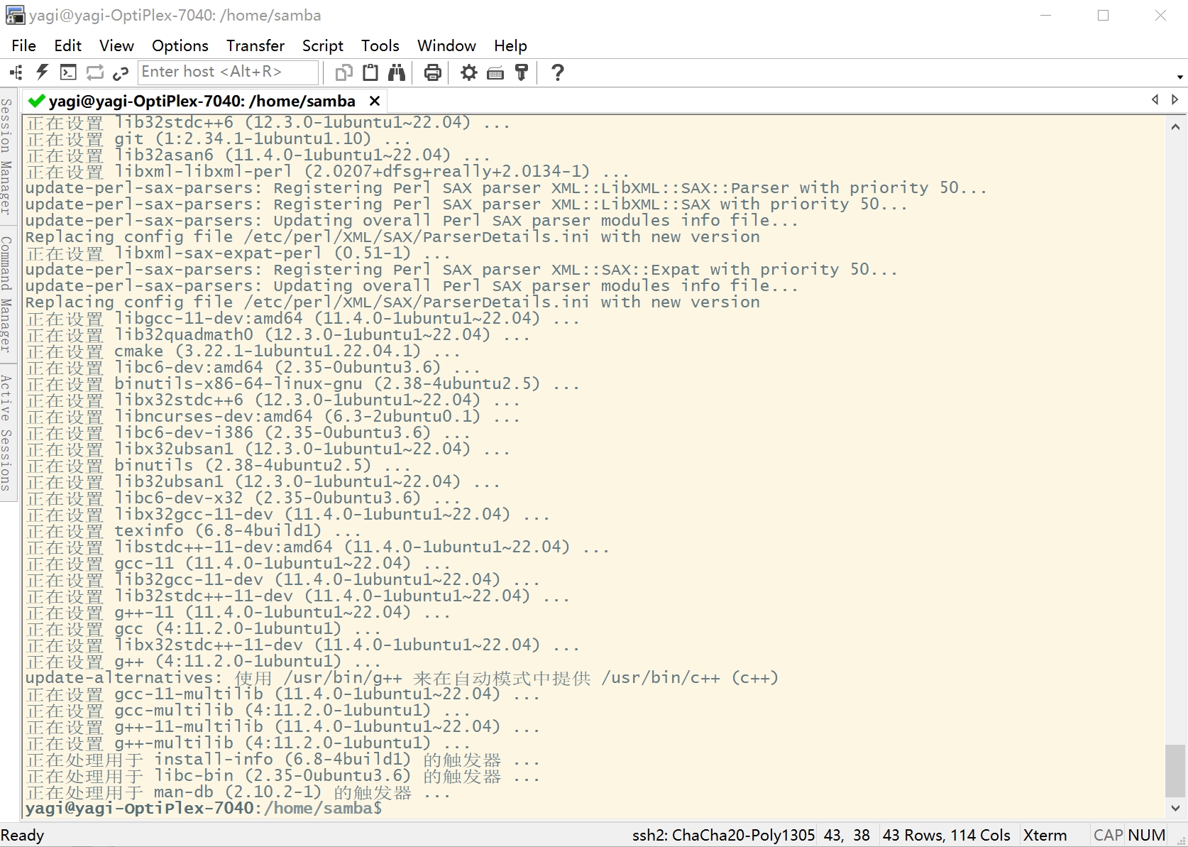 (上述命令需要逐行复制粘贴,每行结尾处的“\”表明该命令尚未结束,下一行会出现“>”符号,可以接着输入下一行命令内容。该条命令目的是安装系统编译所需要的相关软件,共计97项)