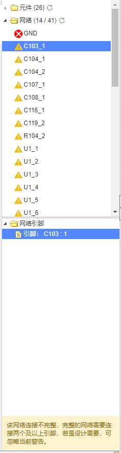 在原理图中使用自己画的库和封装的时候检查网络,显示所有引脚都没有连接,引脚管理器里也都正常,不知道咋回事?