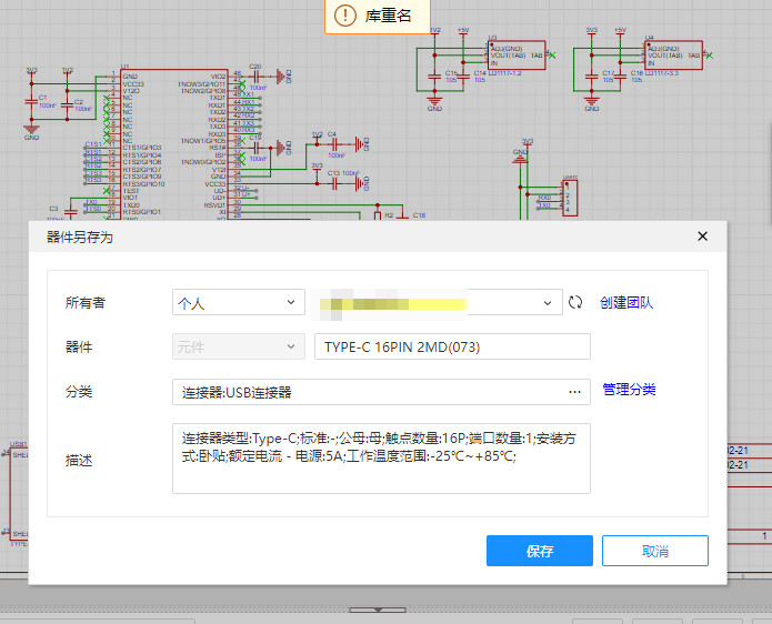 重别人的工程里选择了如下库保存到个人库显示库重名是什么原因,我保存到usb接插件不能保存