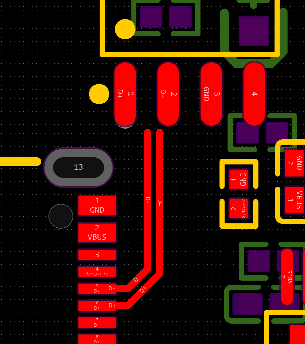 像这样ch340的差分引脚和type-c的引脚交叉了,怎么处理比较好