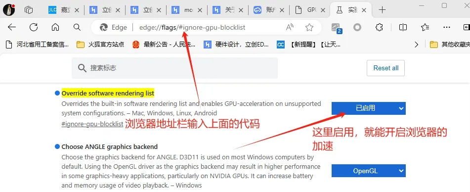 我电脑上的浏览器通过这个命令edge://flags/#ignore-gpu-blocklist打开了显卡加速,现在用浏览器打开专业版的可以流畅编辑pcb了,但是我用客户端还是会提示,请问客户端如何修改这个参数,强制时使用显卡加速啊~!